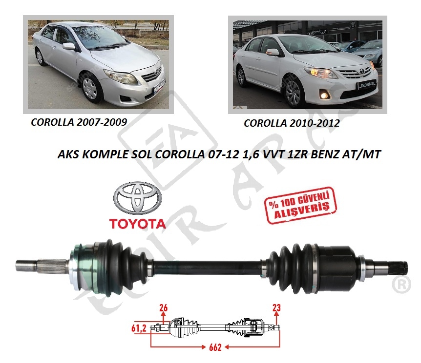 AKS KOMPLE SOL COROLLA 07-12 1,6 VVT 1ZR / 12-18 1,33 1NR BENZ AT MT
