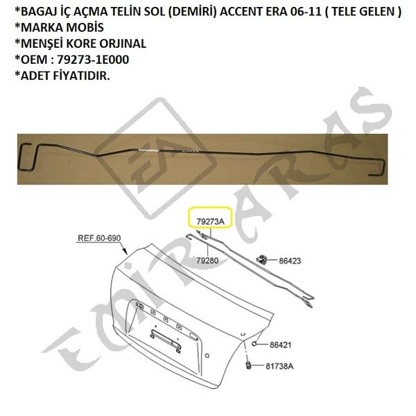 BAGAJ İÇ AÇMA TEL SOL (DEMİRİ) ACCENT ERA 06-11 ( TELE GELEN )