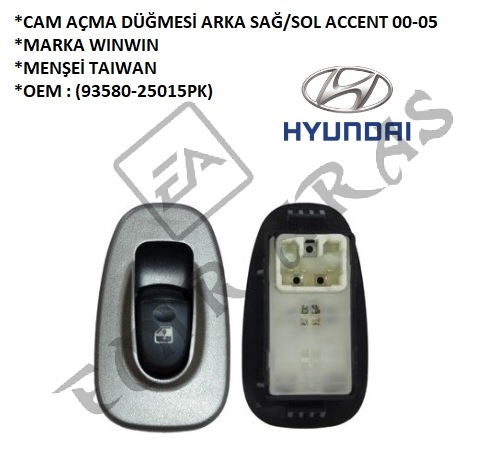 CAM AÇMA DÜĞMESİ ARKA SAĞ SOL ACCENT 00-05 (93580-25015PK)