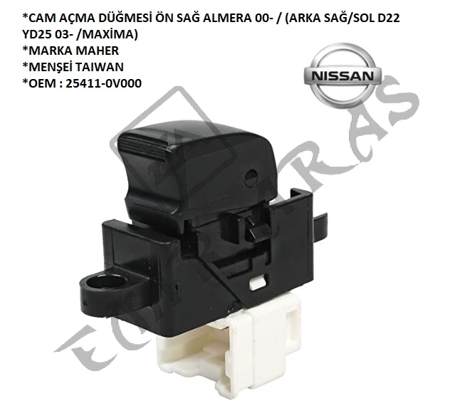 CAM AÇMA DÜĞMESİ ÖN SAĞ ALMERA 00- PRİMERA (ARKA SAĞSOL D22 YD25 03- MAXİMA)