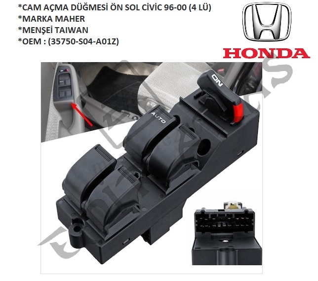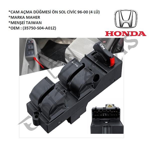 CAM AÇMA DÜĞMESİ ÖN SOL CİVİC 96-00 (4 LÜ) (35750-S04-A01Z)