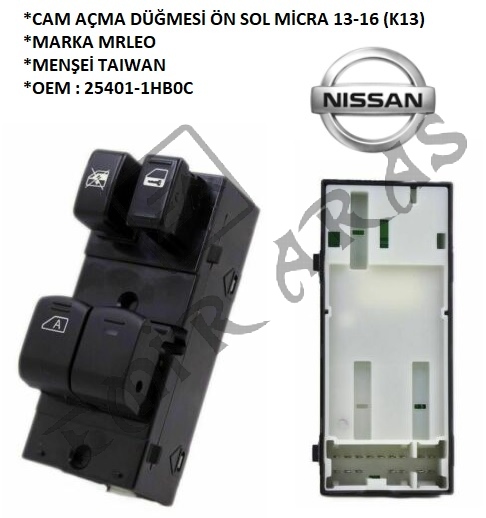 CAM AÇMA DÜĞMESİ ÖN SOL MİCRA 13-16 (K13) (25401-1HB0C)