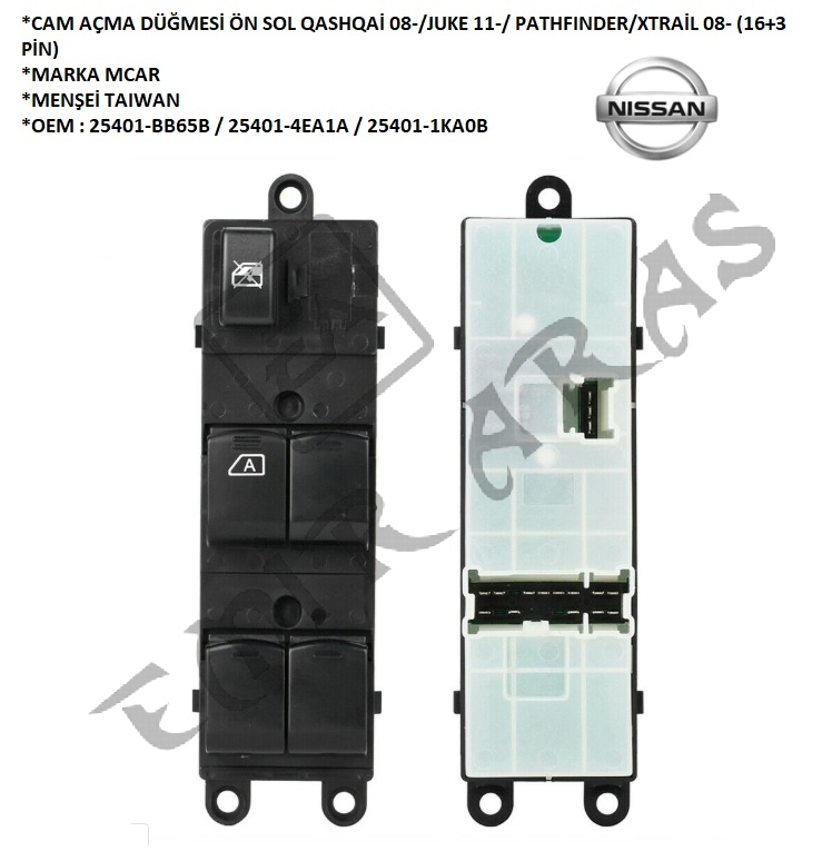 CAM AÇMA DÜĞMESİ ÖN SOL QASHQAİ 14- JUKE 14- XTRAİL 14-