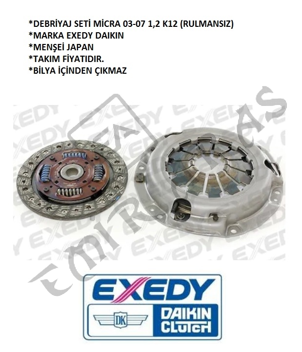 DEBRİYAJ SETİ MİCRA 03-07 1,2 K12 CR12 (RULMANSIZ)