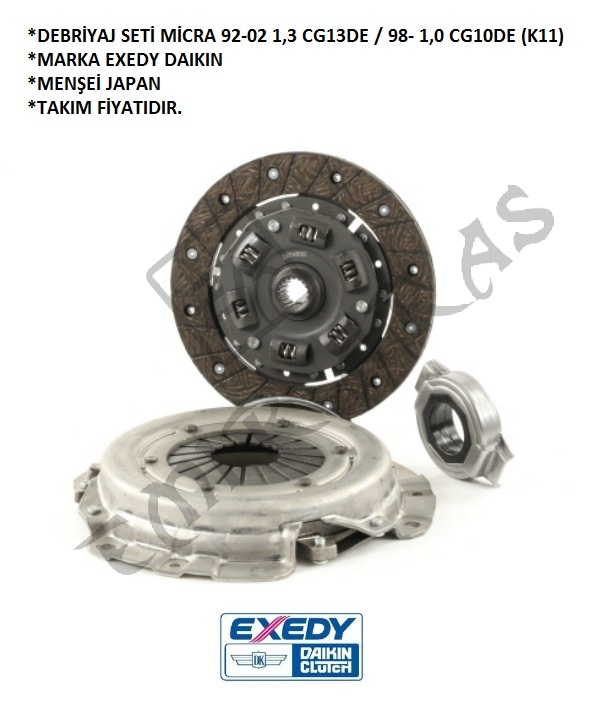 DEBRİYAJ SETİ MİCRA 92-02 1,3 CG13DE 98- 1,0 CG10DE (K11)