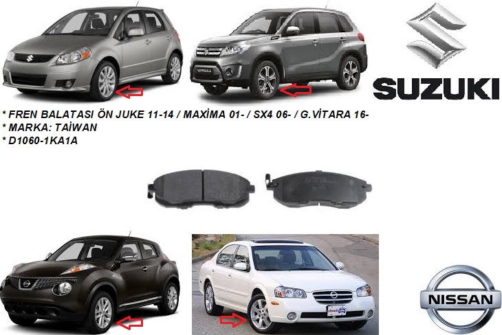 FREN BALATASI ÖN JUKE 11-14 MAXİMA 01- SX4 06- G.VİTARA 16-
