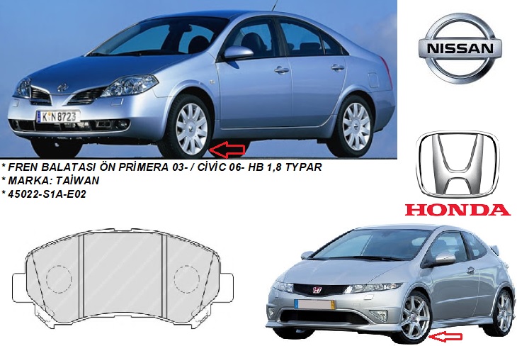 FREN BALATASI ÖN PRİMERA 03- P12 CİVİC 06- HB 1,8 TYPAR İX20 10-