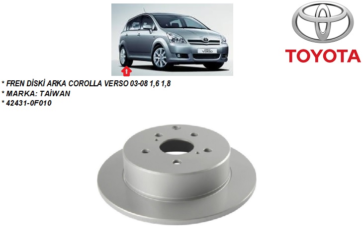 FREN DİSKİ ARKA COROLLA VERSO 03-08 1,6 1,8