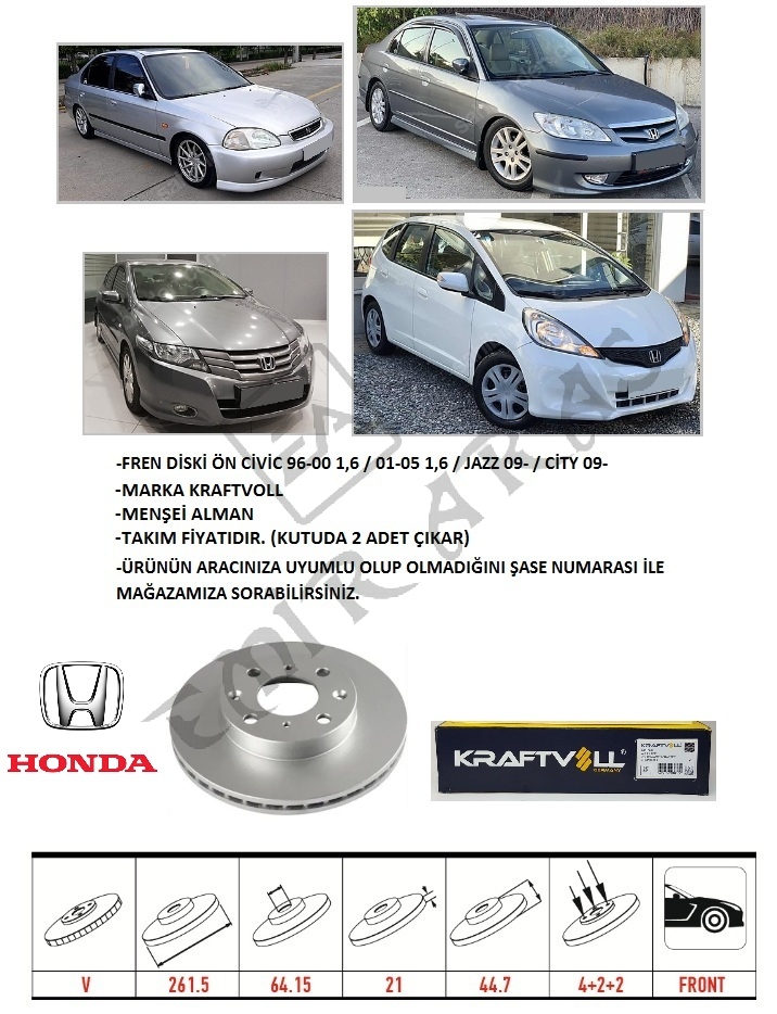 FREN DİSKİ ÖN CİVİC 96-00 1,6 01-05 1,6 JAZZ 09- CİTY 09-12 20- 262 mm (4)