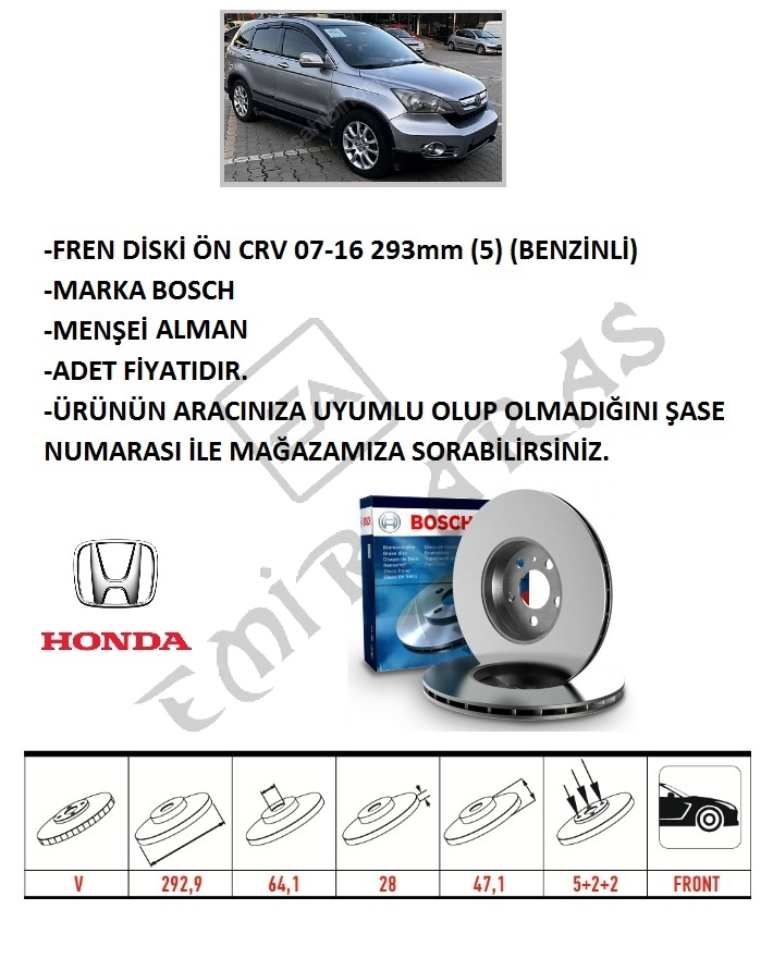 FREN DİSKİ ÖN CRV 07-16 293mm (5) (BENZİNLİ) RE5 / CRV 12-14 1,6 DİZEL RE6