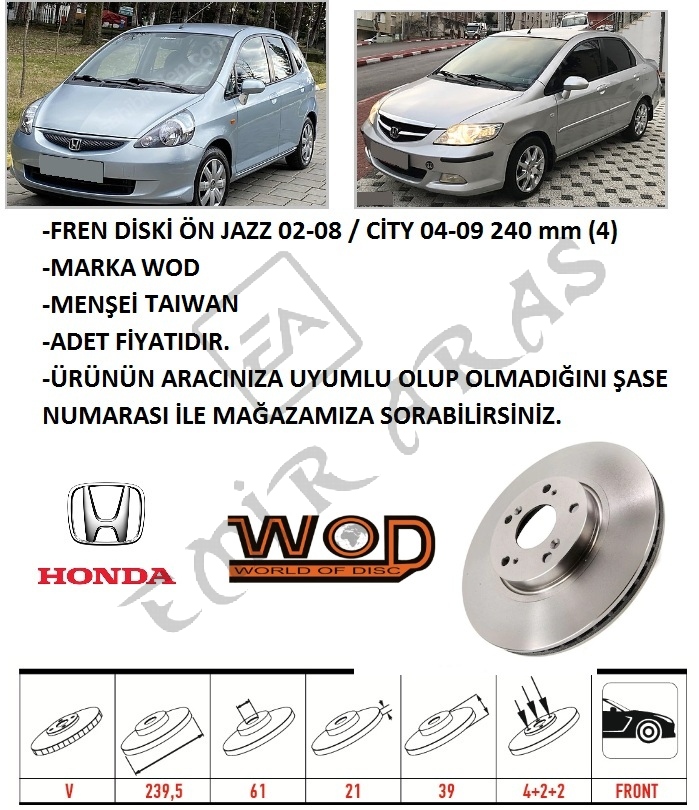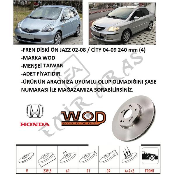 FREN DİSKİ ÖN JAZZ 02-08 CİTY 04-09 240 mm (4)