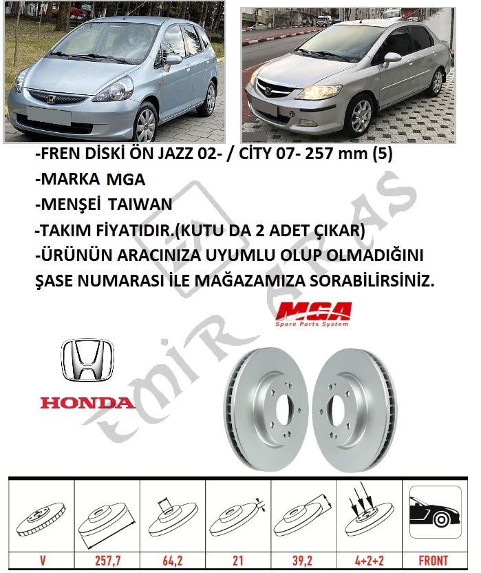FREN DİSKİ ÖN JAZZ 02- CİTY 06-09 257 mm (4) SUNROFLU