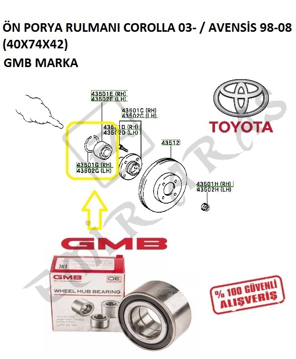 GH040050 ÖN PORYA RULMANI COROLLA 03- AVENSİS 98-08 (40X74X42) GH040050