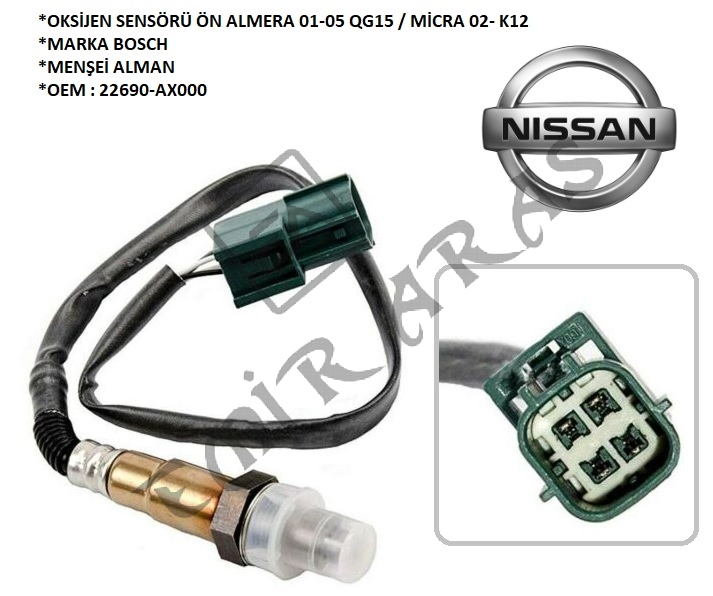 OKSİJEN SENSÖRÜ ÖN PRİMERA 03- ALMERA 98- 1,6 MİCRA NOTE (YEŞİL SOKET)