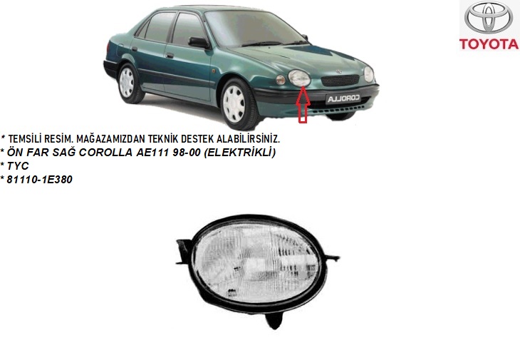 ÖN FAR SAĞ COROLLA AE111 98-00 (ELEKTRİKLİ)