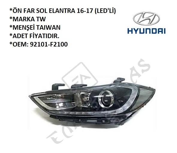 ÖN FAR SOL ELANTRA 16-17 (LED'Lİ) (92101-F2100)