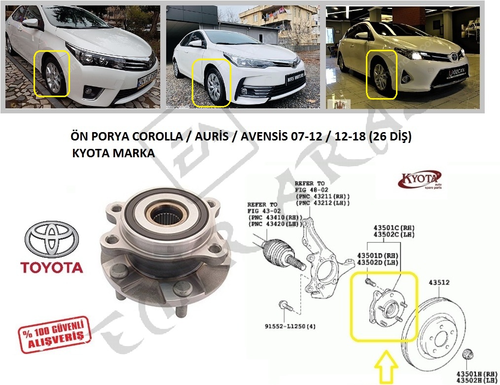 ÖN PORYA COROLLA AURİS AVENSİS 07-12 12-18 RAV4 06- (26 DİŞ)