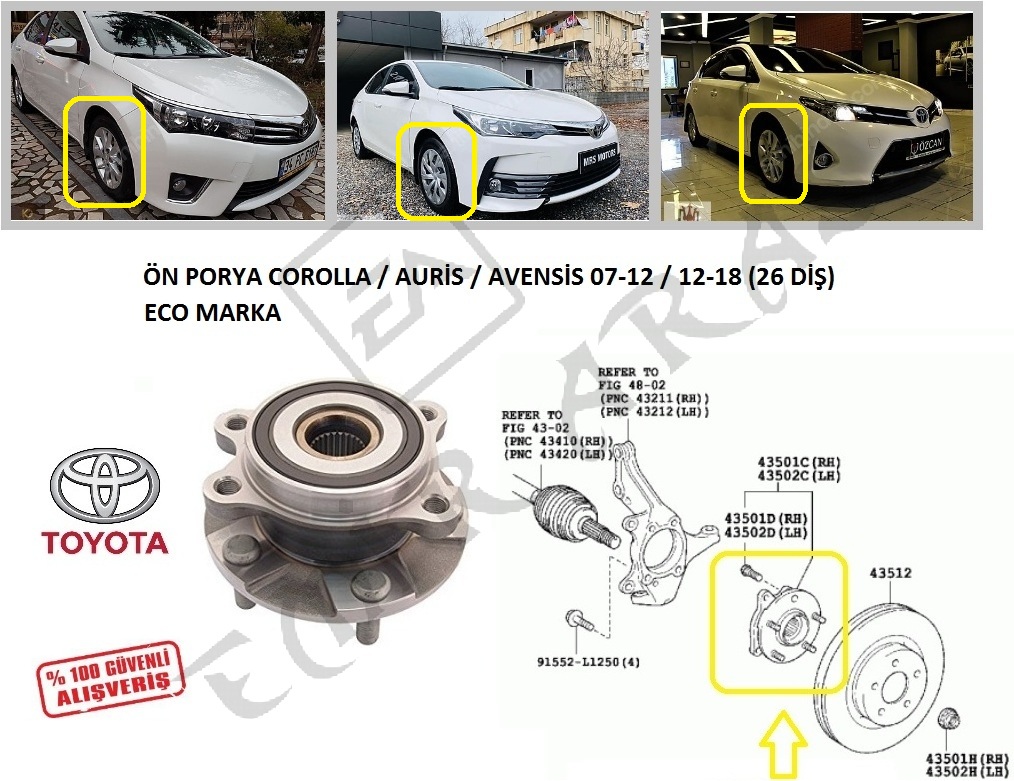 ÖN PORYA COROLLA AURİS AVENSİS 07-12 12-18 RAV4 06- (26 DİŞ)