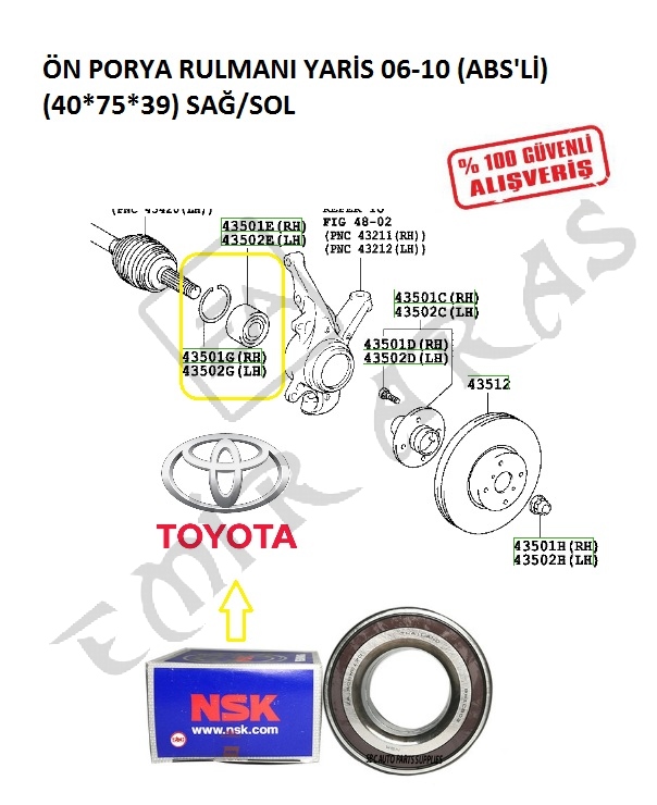 ÖN PORYA RULMANI YARİS 06-10 12-16 (ABS\'Lİ) (40*75*39) SAĞSOL