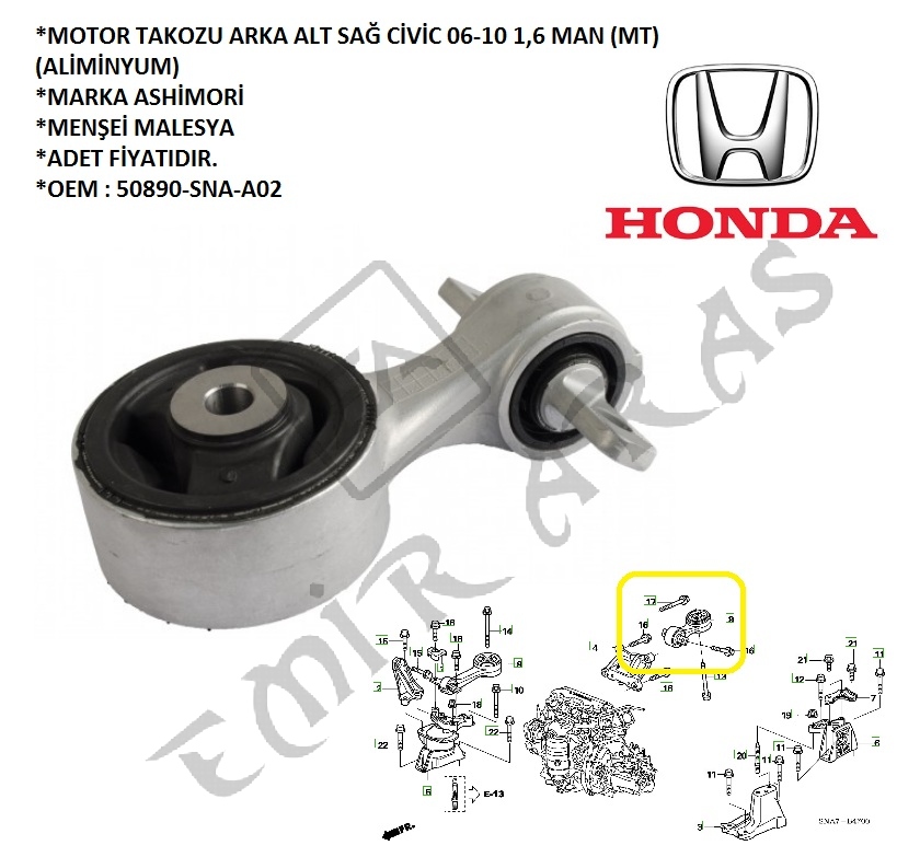 MOTOR TAKOZU ARKA ALT SAĞ CİVİC 06-10 1,6 MAN (MT) (ALİMİNYUM)